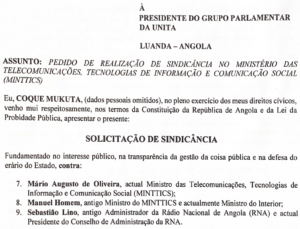 Entre os pontos mais sensíveis da denúncia está o Projecto de Expansão e Modernização Técnica e Tecnológica da Rádio Nacional de Angola, adjudicado à empresa norte-americana GATESAIR, vencedora de concurso público internacional. De acordo com a documentação apresentada, 10% do valor global do projecto, correspondentes a 39.400.000,00 dólares norte-americanos, levantam sérias dúvidas quanto à sua execução, aplicação e justificação contabilística.