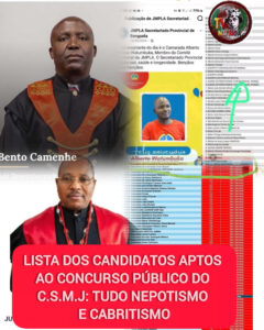 Domingos Camenhe 19.6 e 3996 Ana Maria Soares Bartolomeu Camenhe 15.6 – familiares do Juiz Camenhe que por sinal é amigo pessoal da Actual Chefe de Departamento do RH do CSMJ