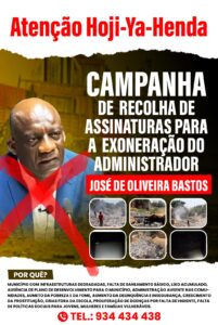 Apelam toda comunidade, do Hoji-Ya-Henda, e da diaspora, para que estejam dentro da campanha de recolha da assinatura e exoneração do administrador. Para os interessados liguem para 934 434 439.