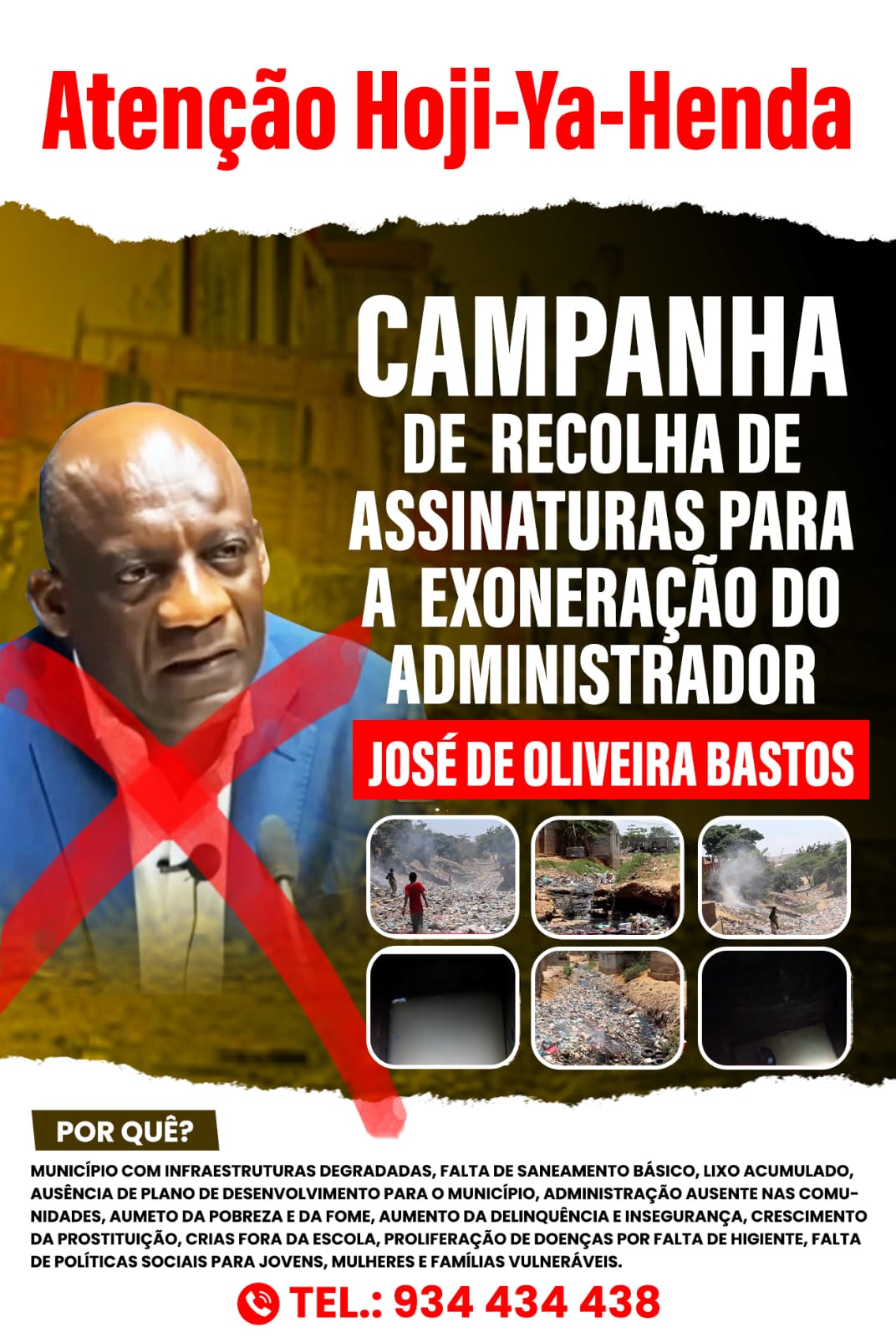 A intenção da campanha, é mostrar, tudo o quão não, anda dentro, e a falta de capacidade técnica, do actual administrador, que nada faz, para dar um município mais puro para os munícipes, e pronto para atender as questões sociais do Hoji-Ya-Henda.