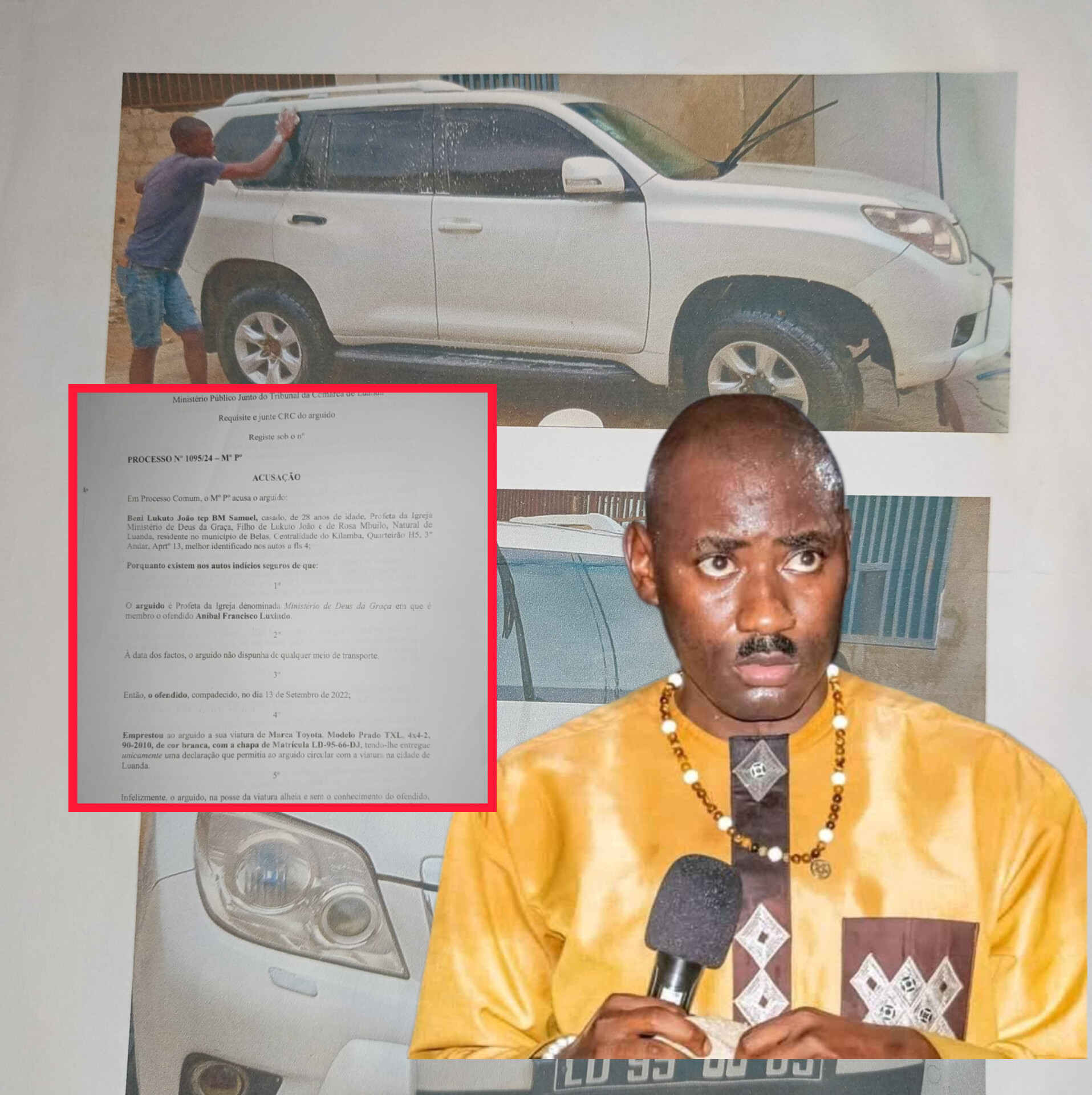 Segundo Francisco Luxindo, em determinado momento, o profeta Beni Lukuto João, mais conhecido por “BM Samuel” fez um pedido pessoal, solicitando o empréstimo de uma viatura para facilitar a sua locomoção. A viatura em causa é da marca Toyota, Modelo Prado TXL 4X4-2, 90-2010, de cor branca, com a chapa de matrícula LD 95-66-DJ, avaliado em 24 milhões de kwanzas.
