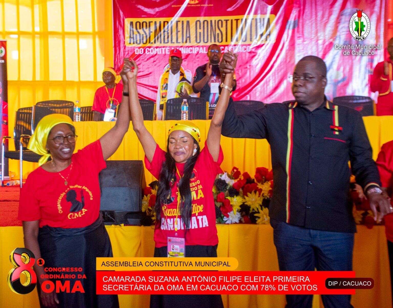Suzana António Filipe foi eleita, neste sábado, 01 de Novembro, a Primeira Secretária da Organização da Mulher Angolana (OMA) do MPLA em Cacuaco, com 78% dos votos a favor.